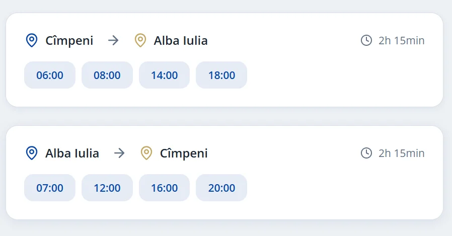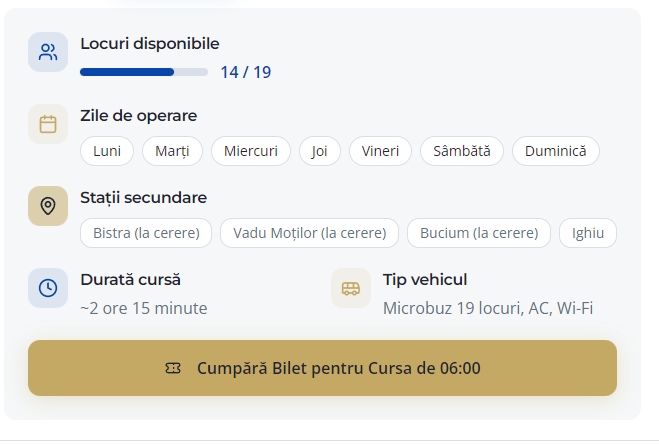 Transport zilnic cu opriri în Abrud și Zlatna. Plecări regulate și prețuri accesibile pentru toți călătorii.